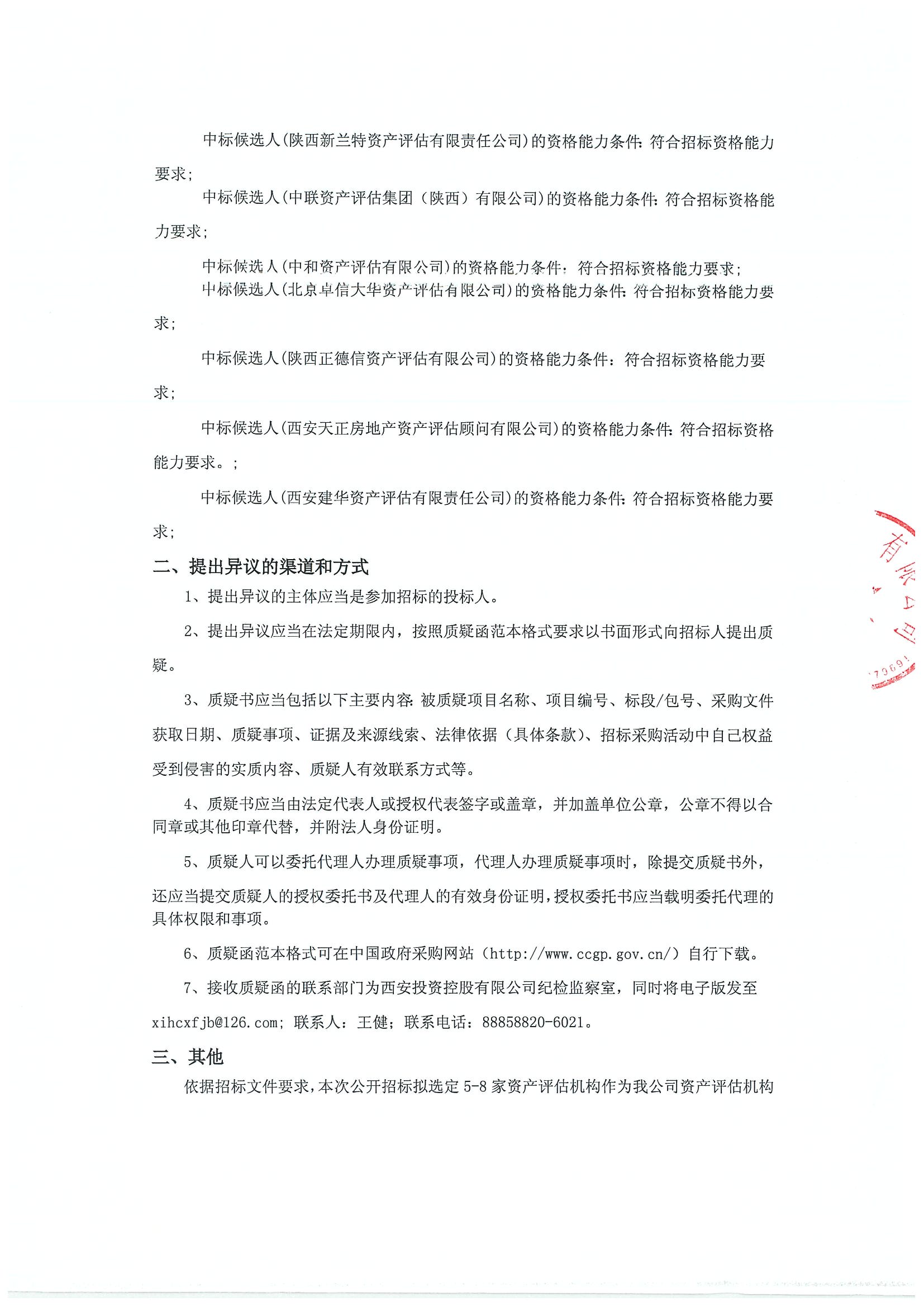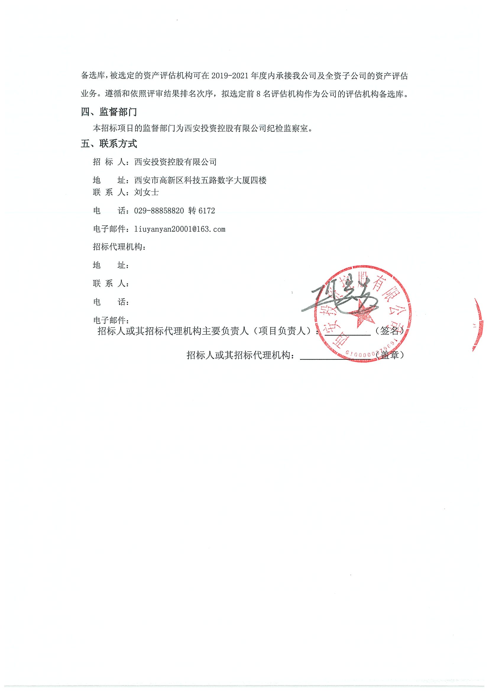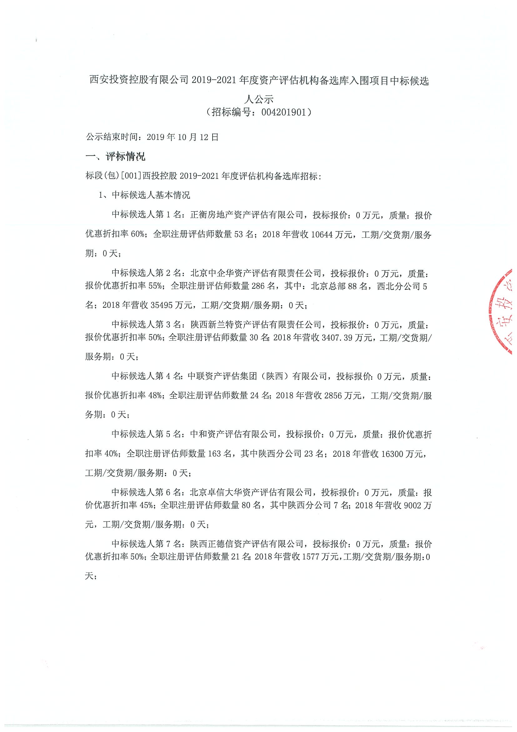 西安投資控股有限公司2019-2021年度資產(chǎn)評估機構(gòu)備選庫入圍項目中標候選人公示